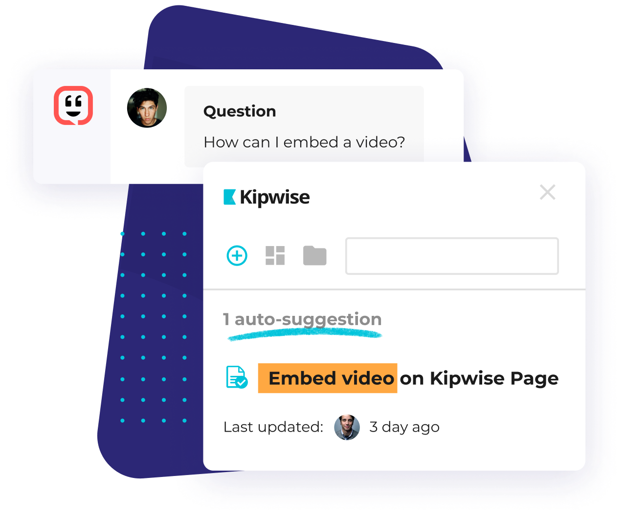 Kipwise can suggest relevant knowledge on your knowledge base automatically as your support reps handle tickets on Kustomer. So your agents do not have to search for related knowledge manually and can resolve customer tickets much quicker and more efficiently.