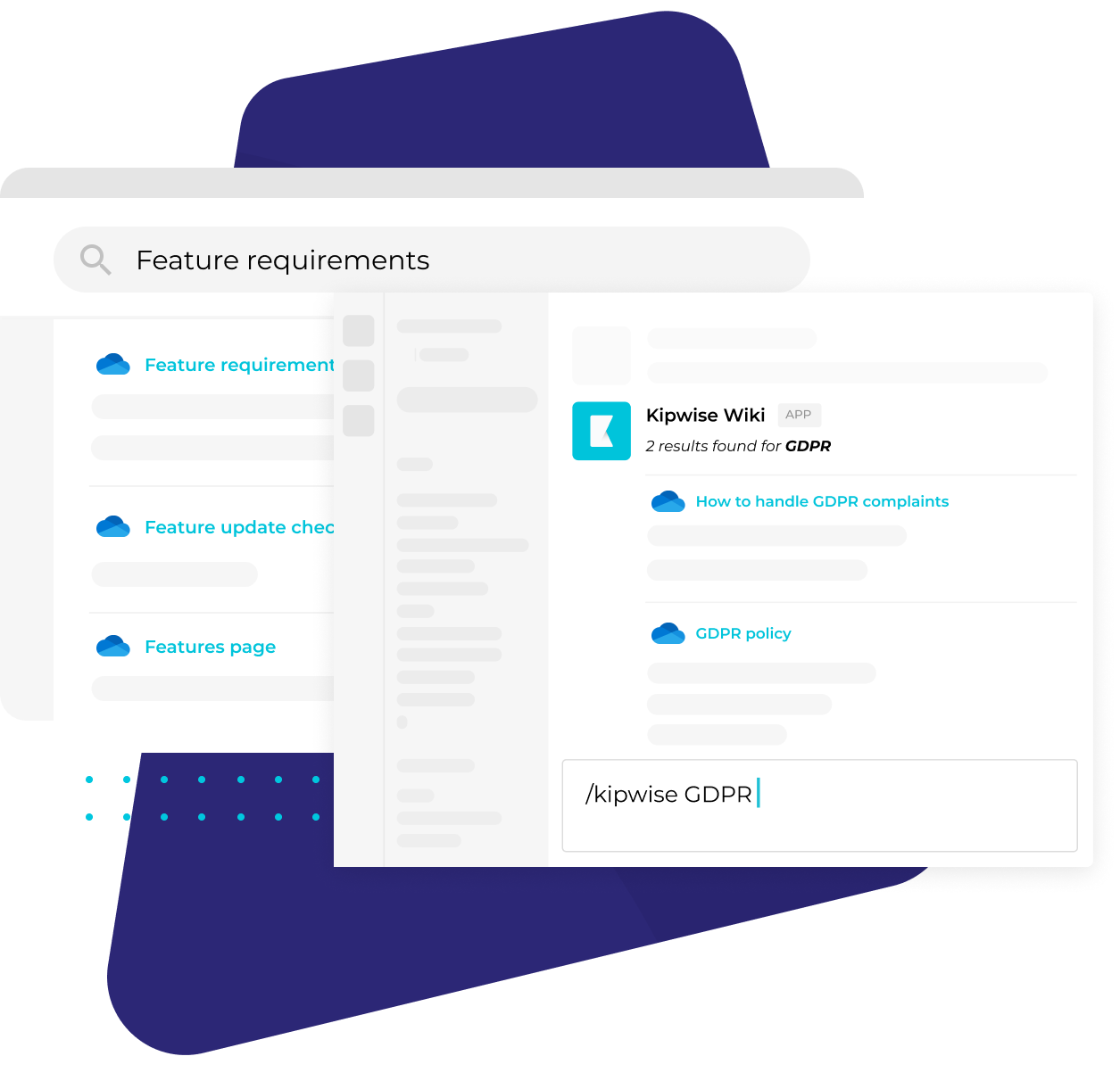 Simply perform one single search via Kipwise, or using our Slack search command or Chrome extension, and get relevant results from OneDrive and other sources that you have connected Kipwise with.