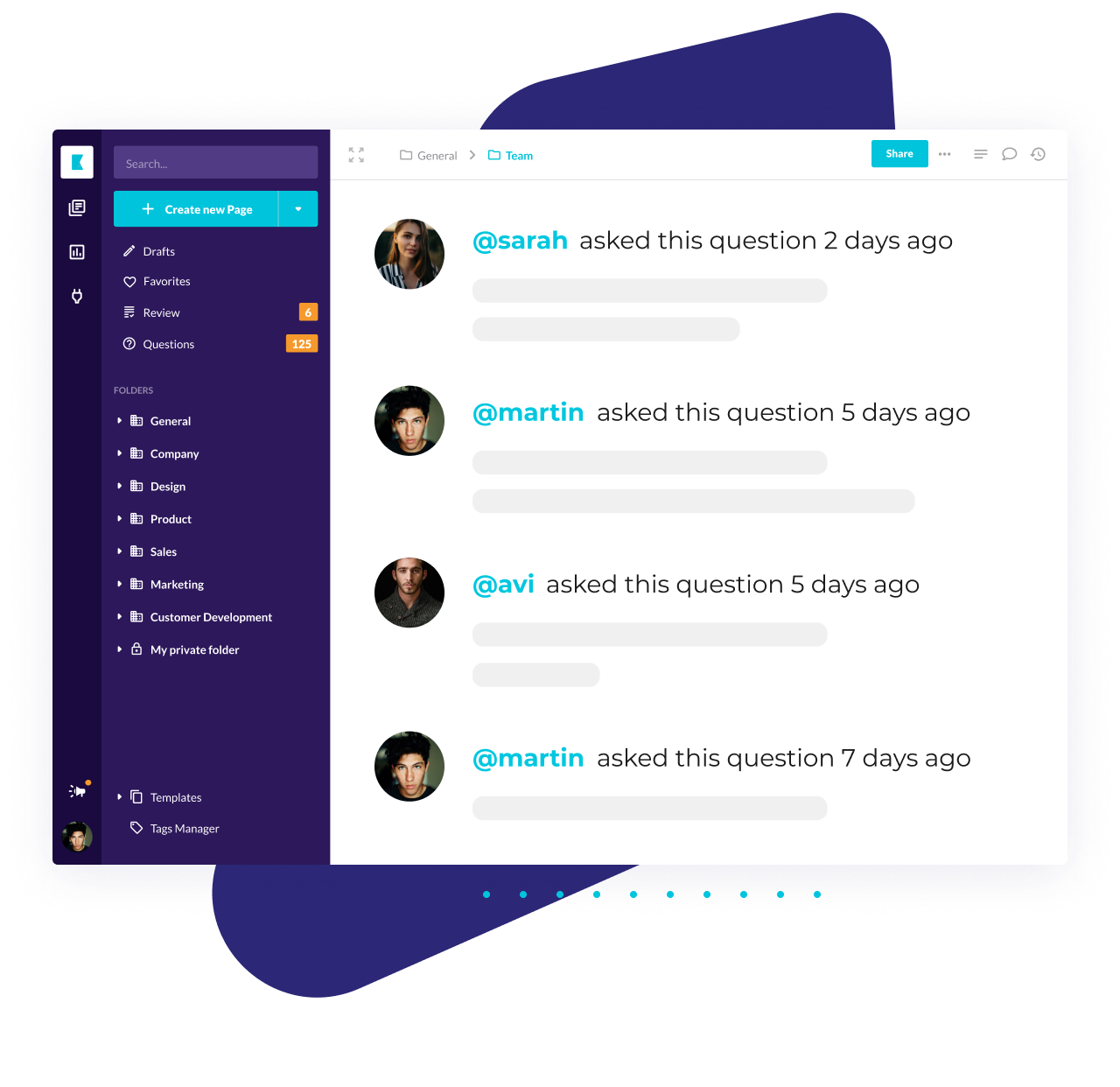 Make it easy for teammates to find answers to common questions, saving managers’ time in answering repeated questions for greater focus and productivity.