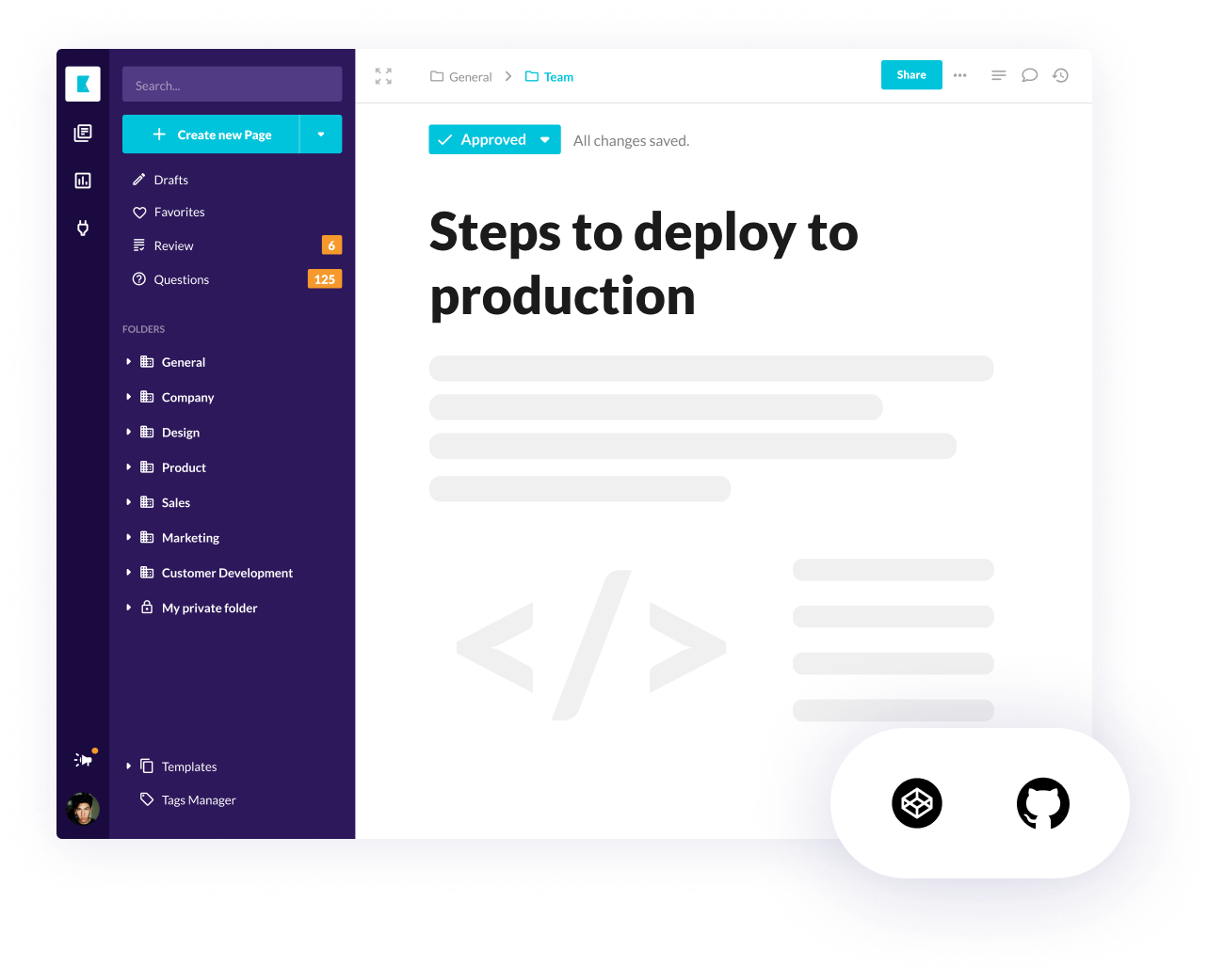 Collaborate on product specs, product roadmap and share best practices and user feedback. Document test results and analytics so your team and future hires can learn from the experience.