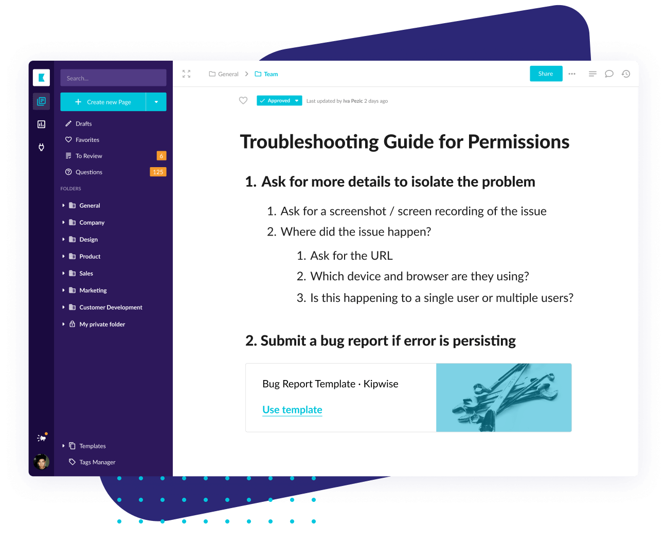 Kipwise offers great integrations with our existing tools so setting up is easy. With Kipwise, documenting team guidelines and workflows has become so much easier. This helps us onboard new teammates faster and do our work more efficiently.