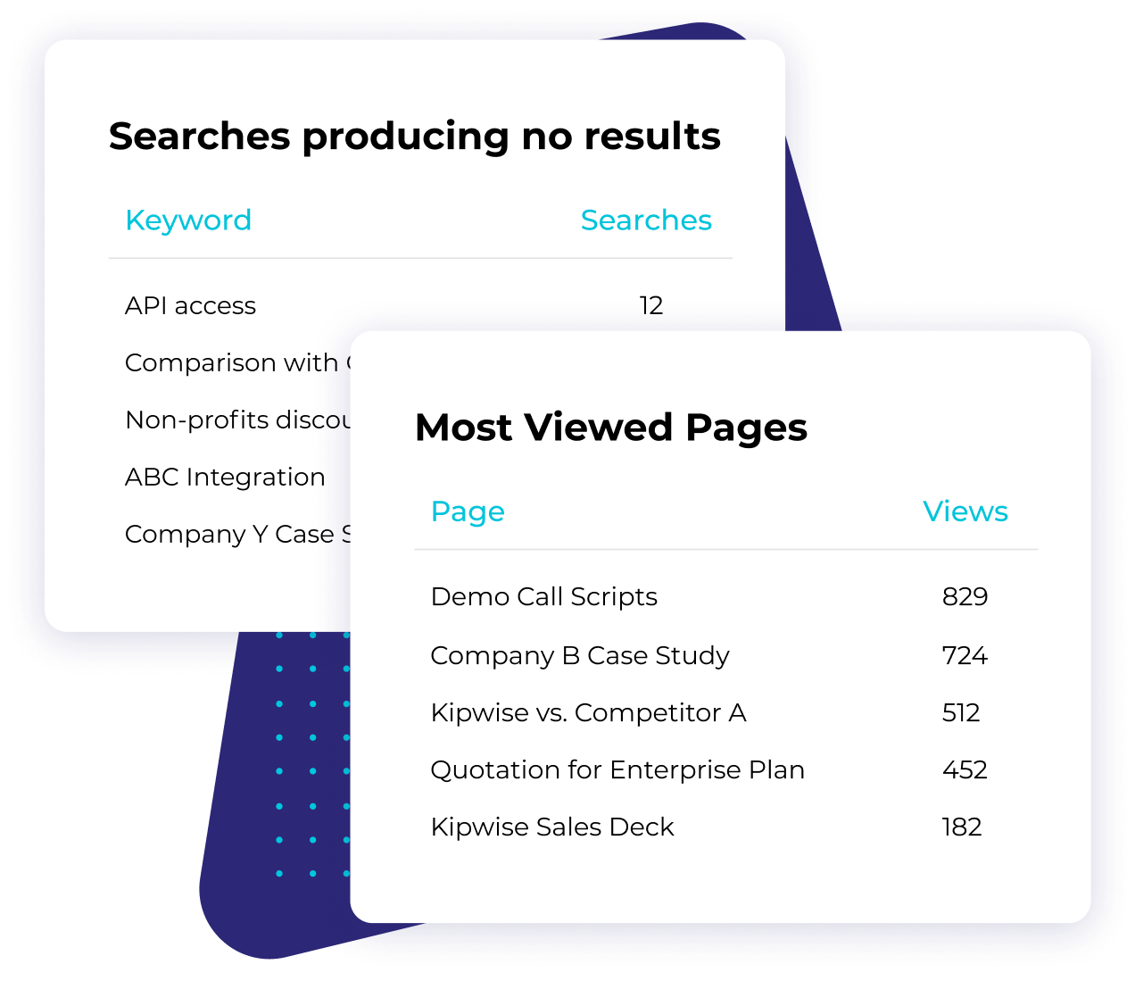 Get insights on how your sales reps interact with your content to identify areas that they need more training on. Find out the missing pieces to keep improving your sales knowledge hub.