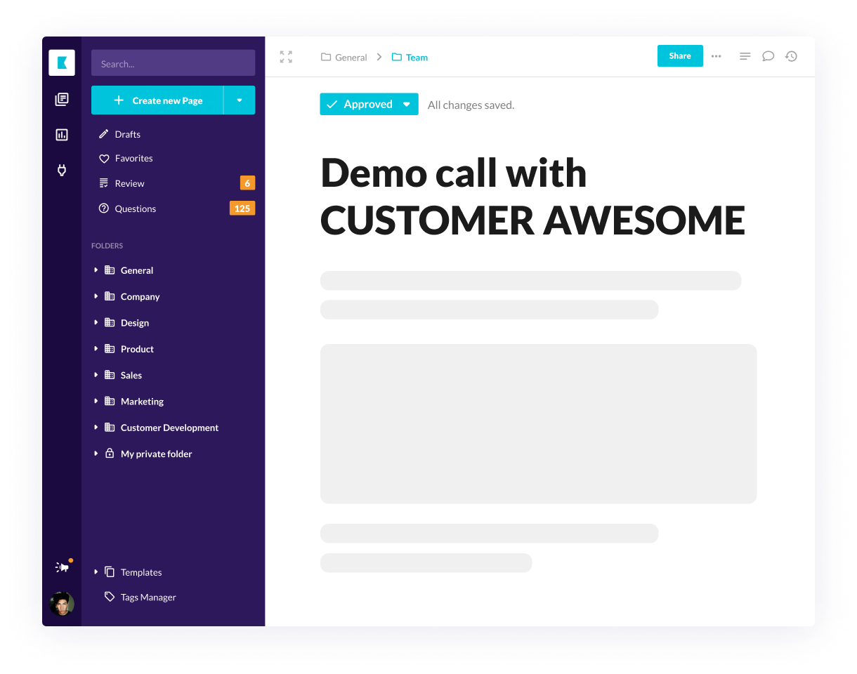 Share industry analysis, sales playbook, demo best practices, script and email templates to help your sales close deals faster. Document sales reviews such as common objections, key customer pain points and lost reasons to help increase win rates.